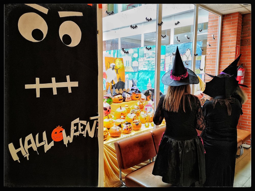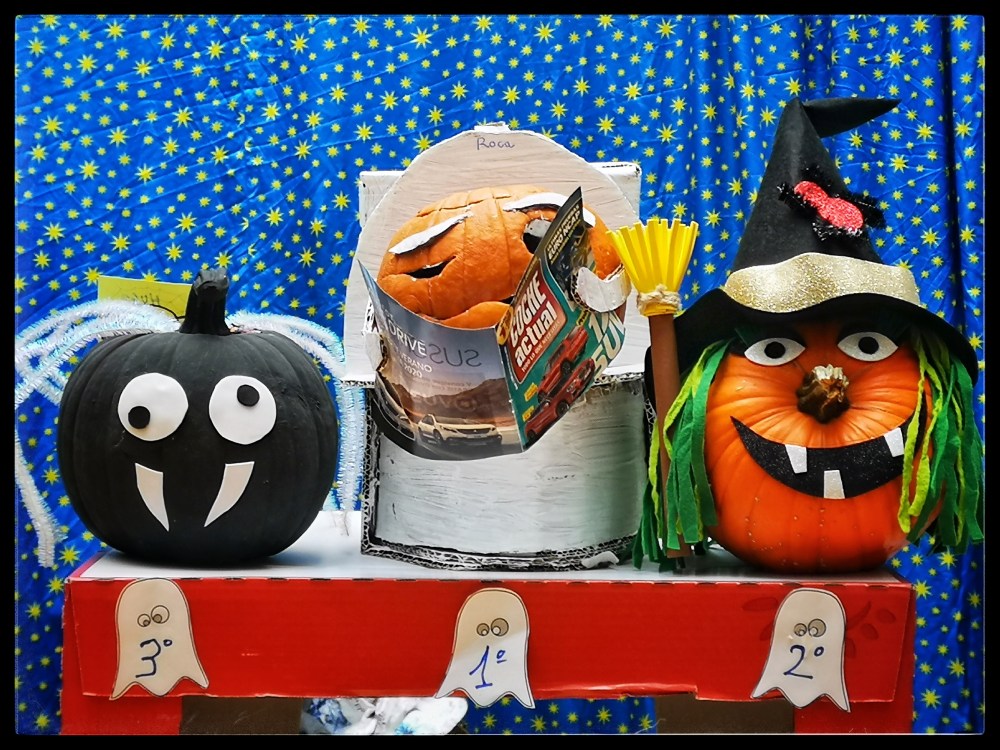 El curso comenzó con la programación de otoño, para la que decoramos la pecera con una exposición de frutos de la estación, y este año, como novedad, convocamos un concurso de calabazas de Halloween que fue todo un éxito, con deliberación del jurado de brujas y entrega de premios en el patio, diplomas para las calabazas más divertidas y regalos de libros en inglés para los ganadores.