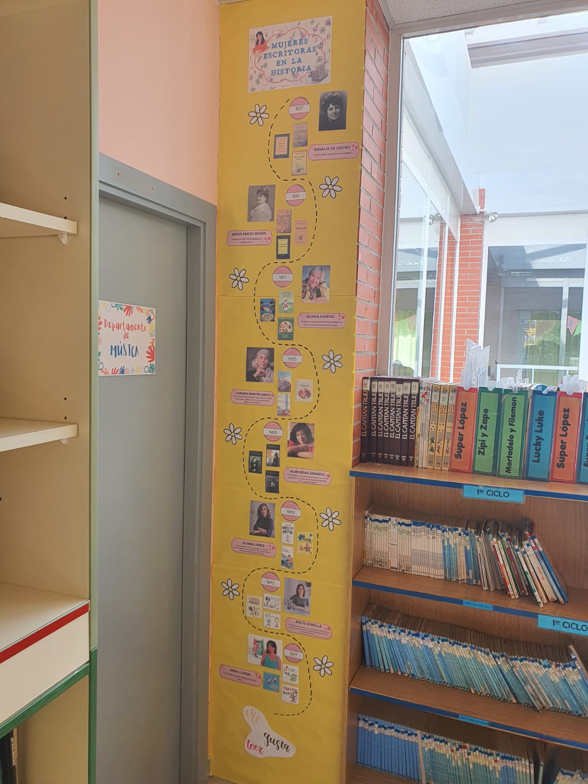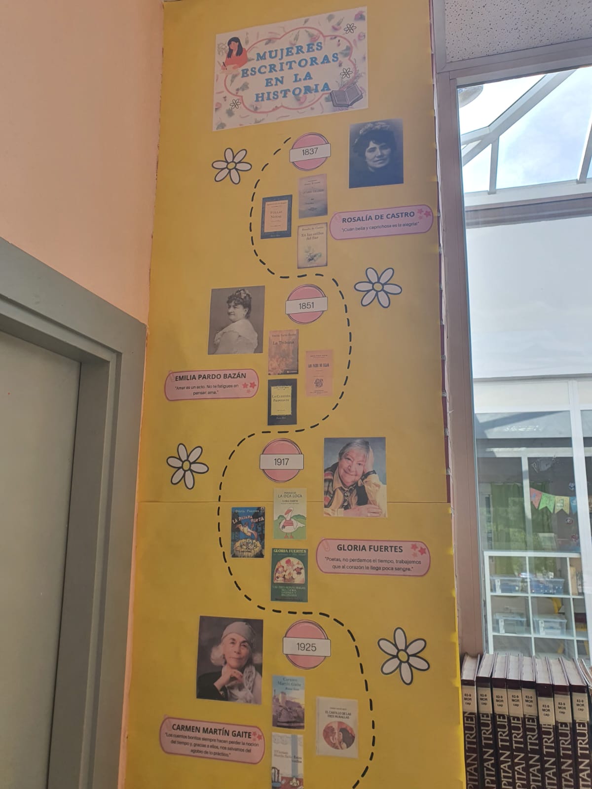 También se ha hecho un mural en la biblioteca que es una línea del tiempo. En él aparecen algunas de las mujeres escritoras más importantes de la historia. Sus fotos, su año de nacimiento, sus obras más destacadas, así como algunas de sus frases más relevantes.