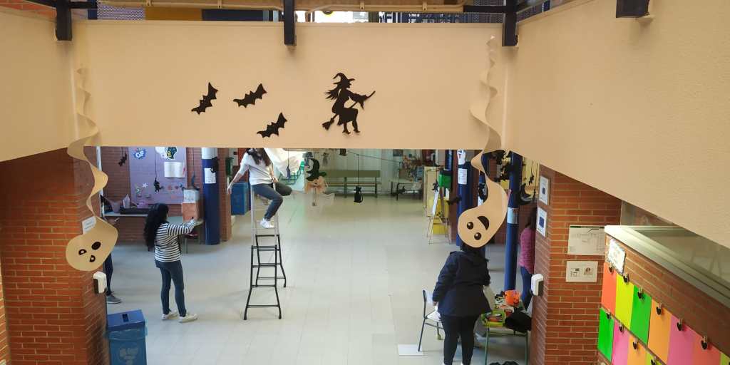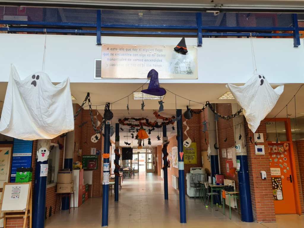 Agradecemos a las familias que han pasado a colaborar en la colocación de los adornos y que han dejado así de terrorífico el hall del cole:
