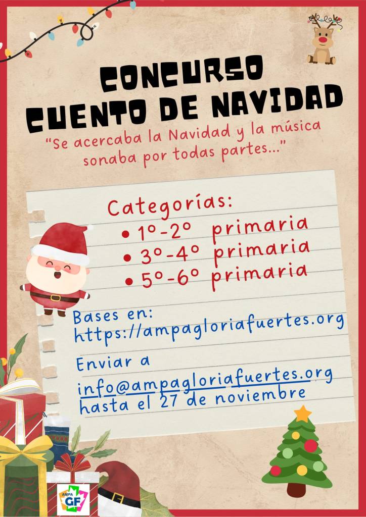 • Enviar en formato Word a la dirección: info@ampagloriafuertes.org, con el asunto “Concurso cuento de Navidad 2024” y categoría en la que participa.