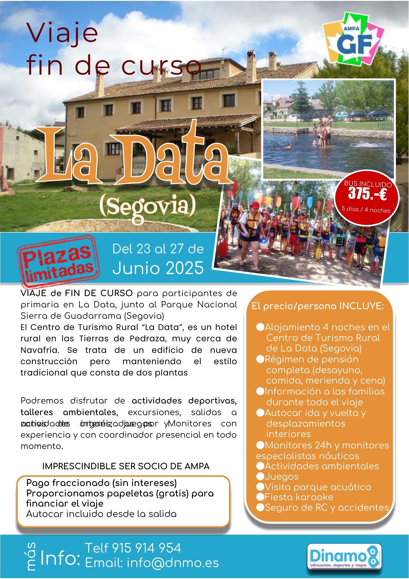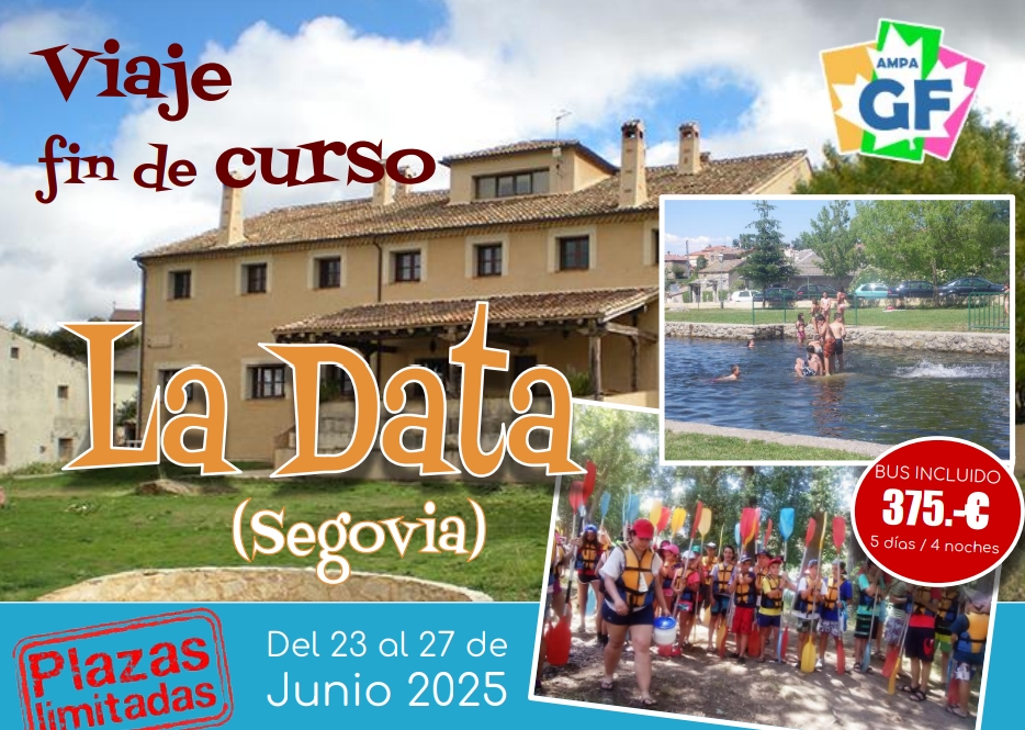 🚨 Actualización, cambio de ubicación 🚨 El viaje tendrá lugar entre el 23 y el 27 de junio de 2025 en La Data (Segovia) e incluye viaje, alojamiento, pensión completa y multitud de actividades.