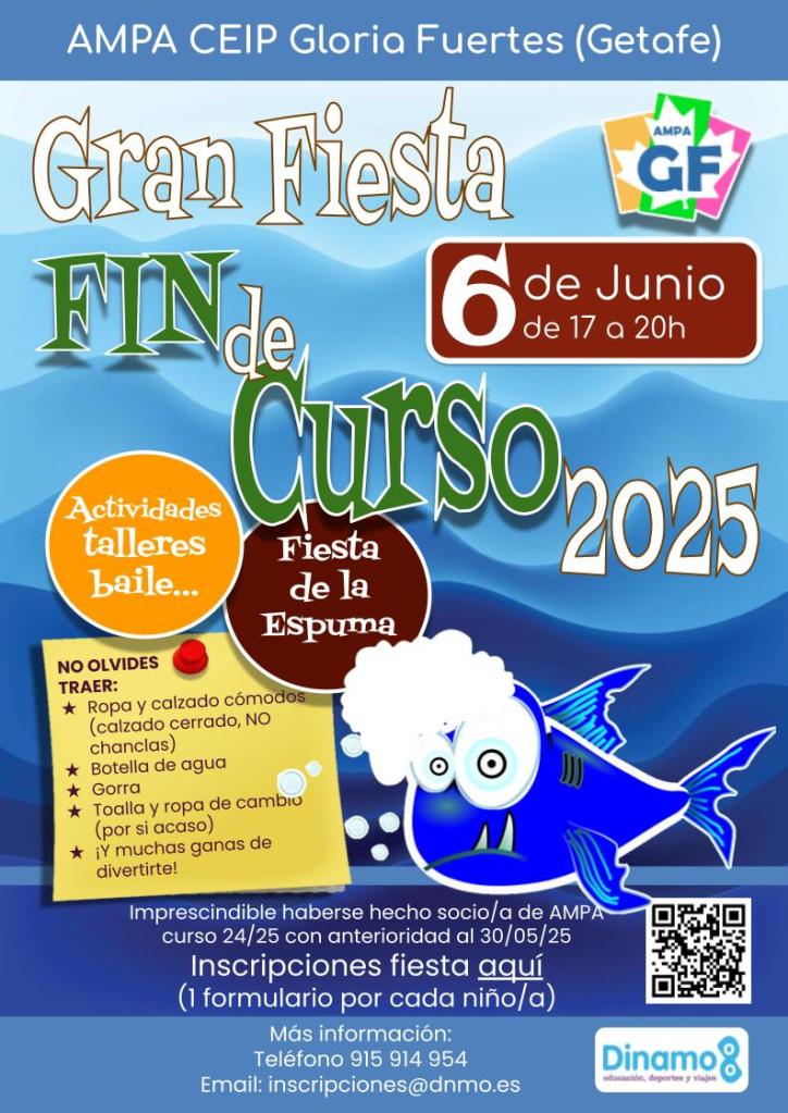 Ya estamos ultimando nuestra fiesta de fin de curso. Este año se celebrará el próximo día 6 de junio. Los socios recibirán a través de Dinamo su enlace para hacer la inscripción y hacer la previsión de asistentes y porción de pizza para los niños. Indicar las posibles alergias en el formulario.