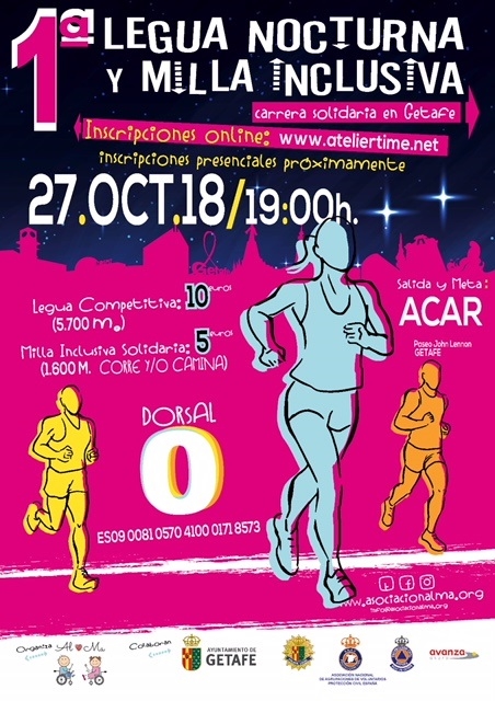 Hola, desde la Asociación ALMA nos han invitado a dar difusión a esta carrera popular que va a tener lugar en Getafe. Nos parece una buena ocasión para invitarnos a participar. Para inscribirse, podéis consultar aquí.